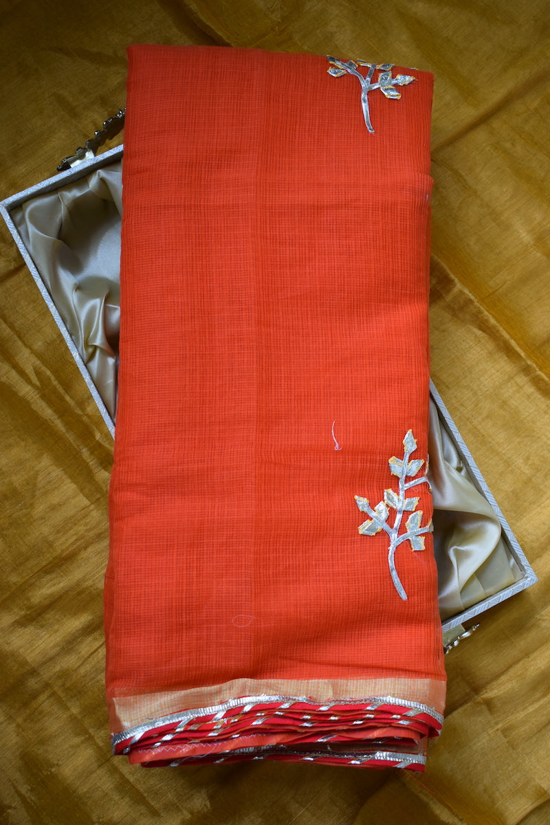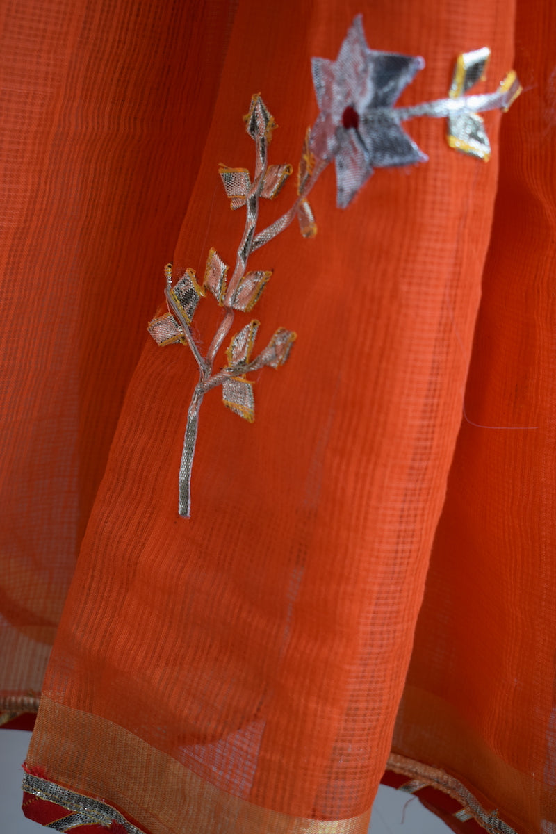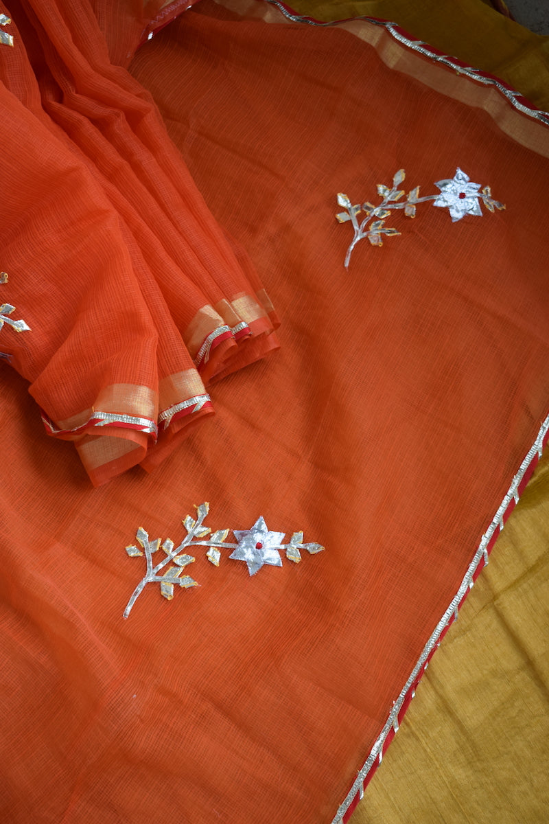 Orange Cotton Kota Doriya with Kaccha Gotapatti work Saree