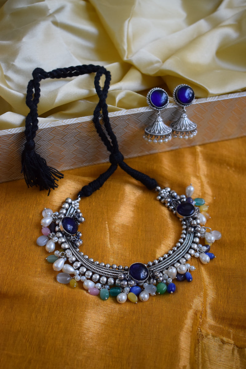 An oxidised traditional necklace set to complete your boho look!