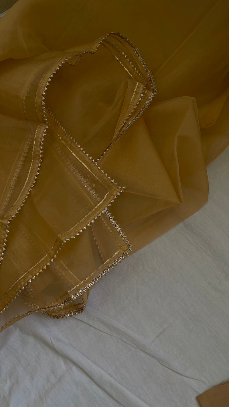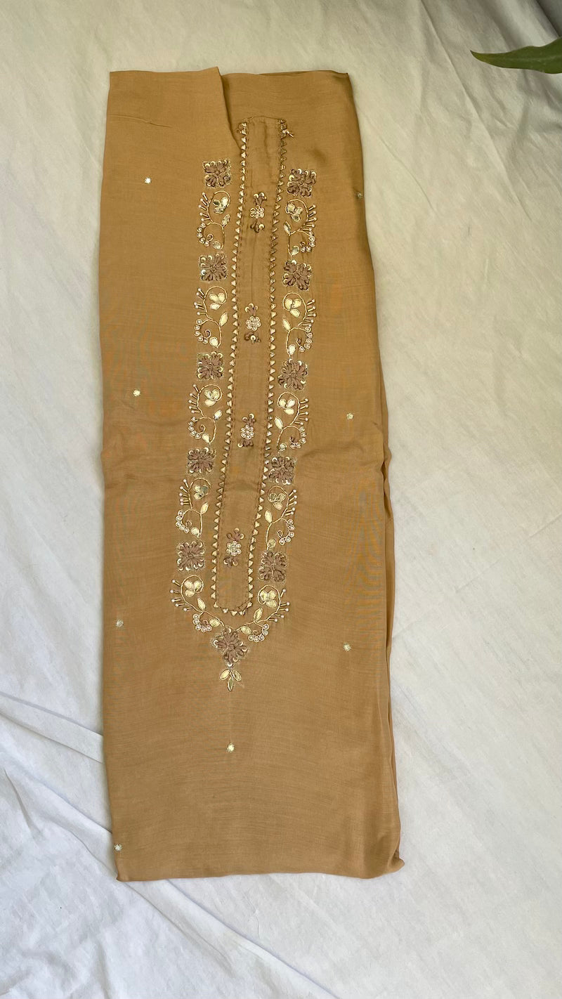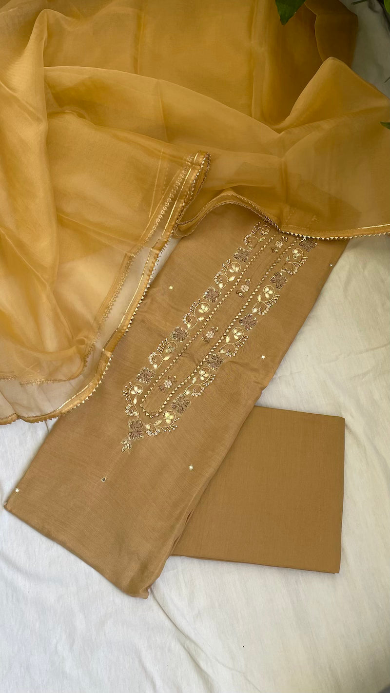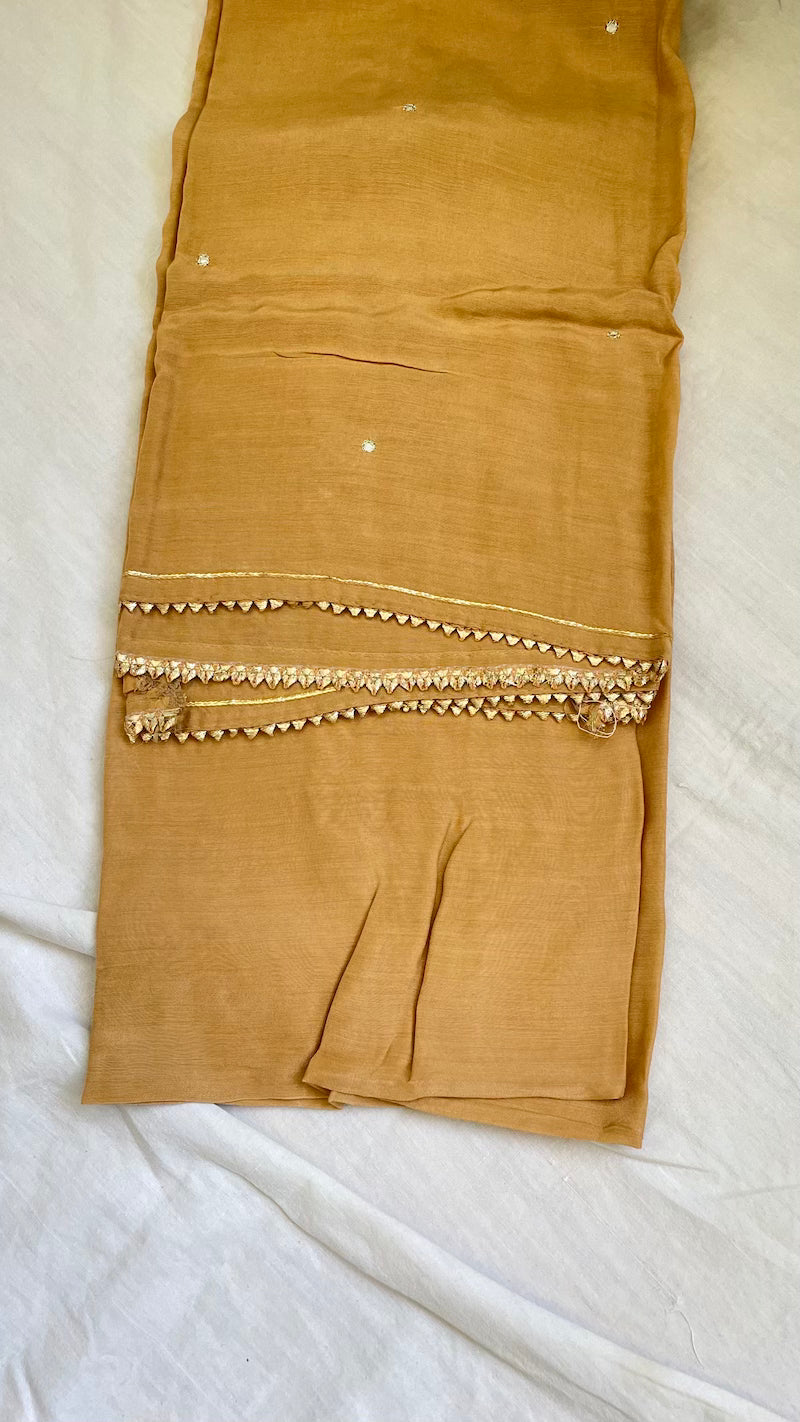 Peach Muslin Silk Suit Dupatta Set with Gotapatti Work
