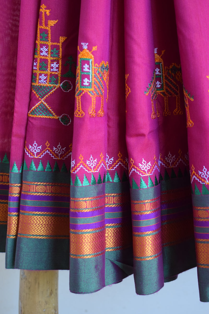 Kasuti - an ancient embroidery technique of North Karnataka typically uses geometrical patterns to create beautiful designs.