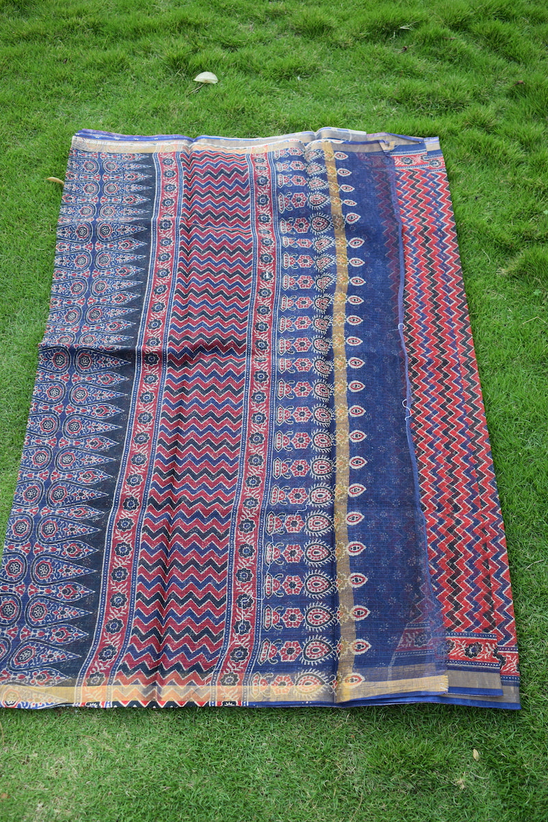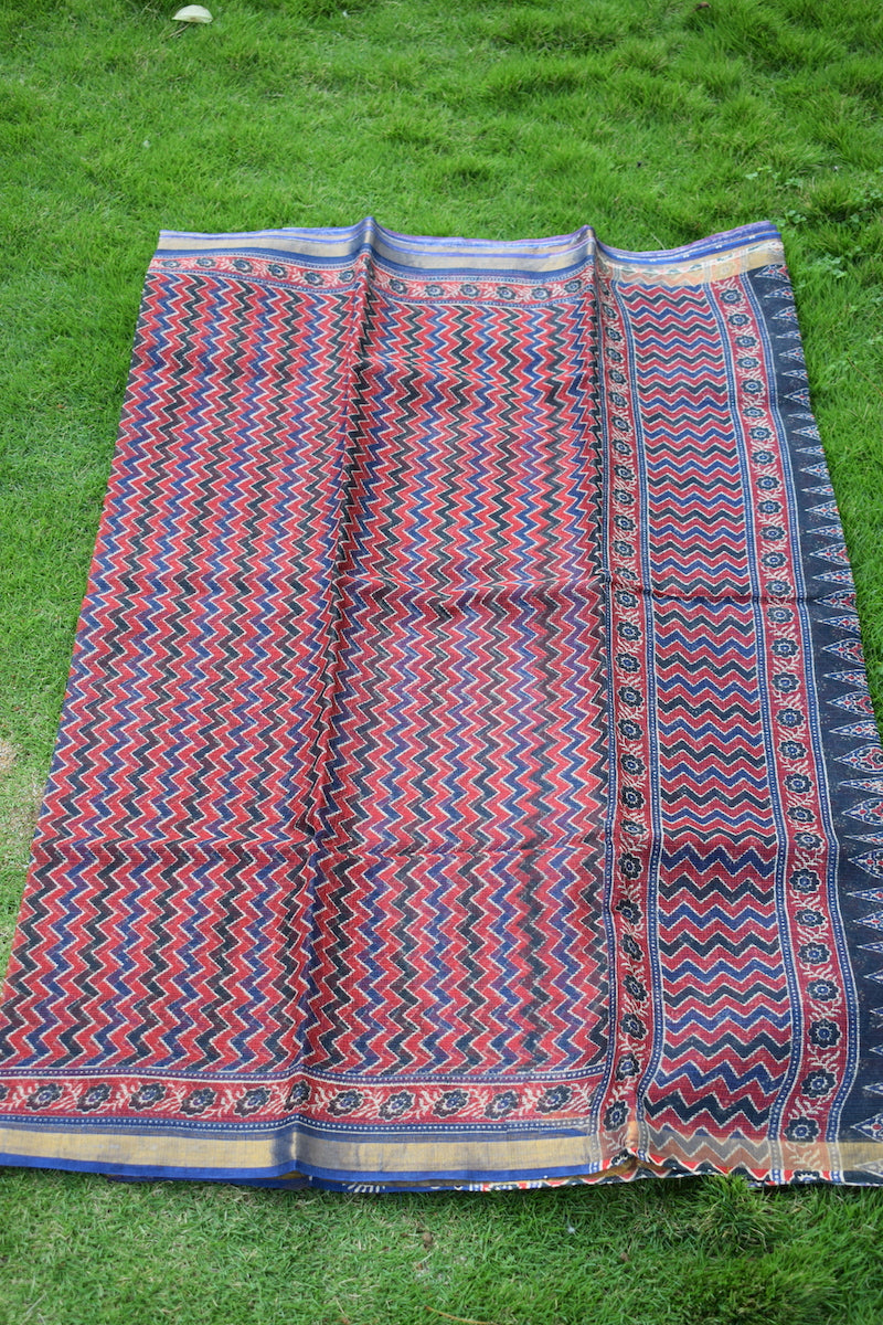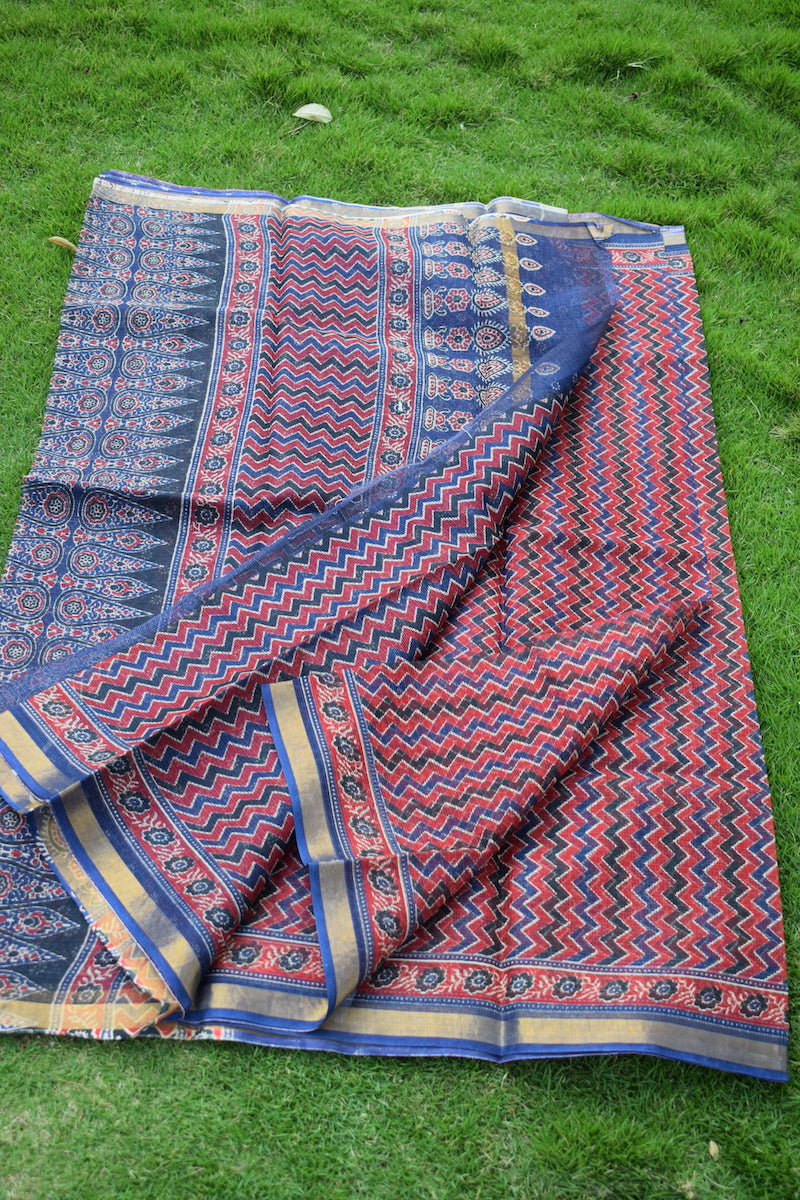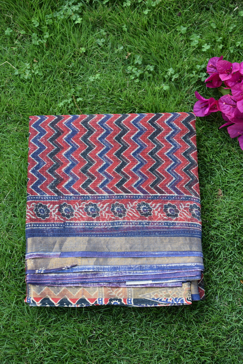 Red Ajrakh Kota Doriya Saree
