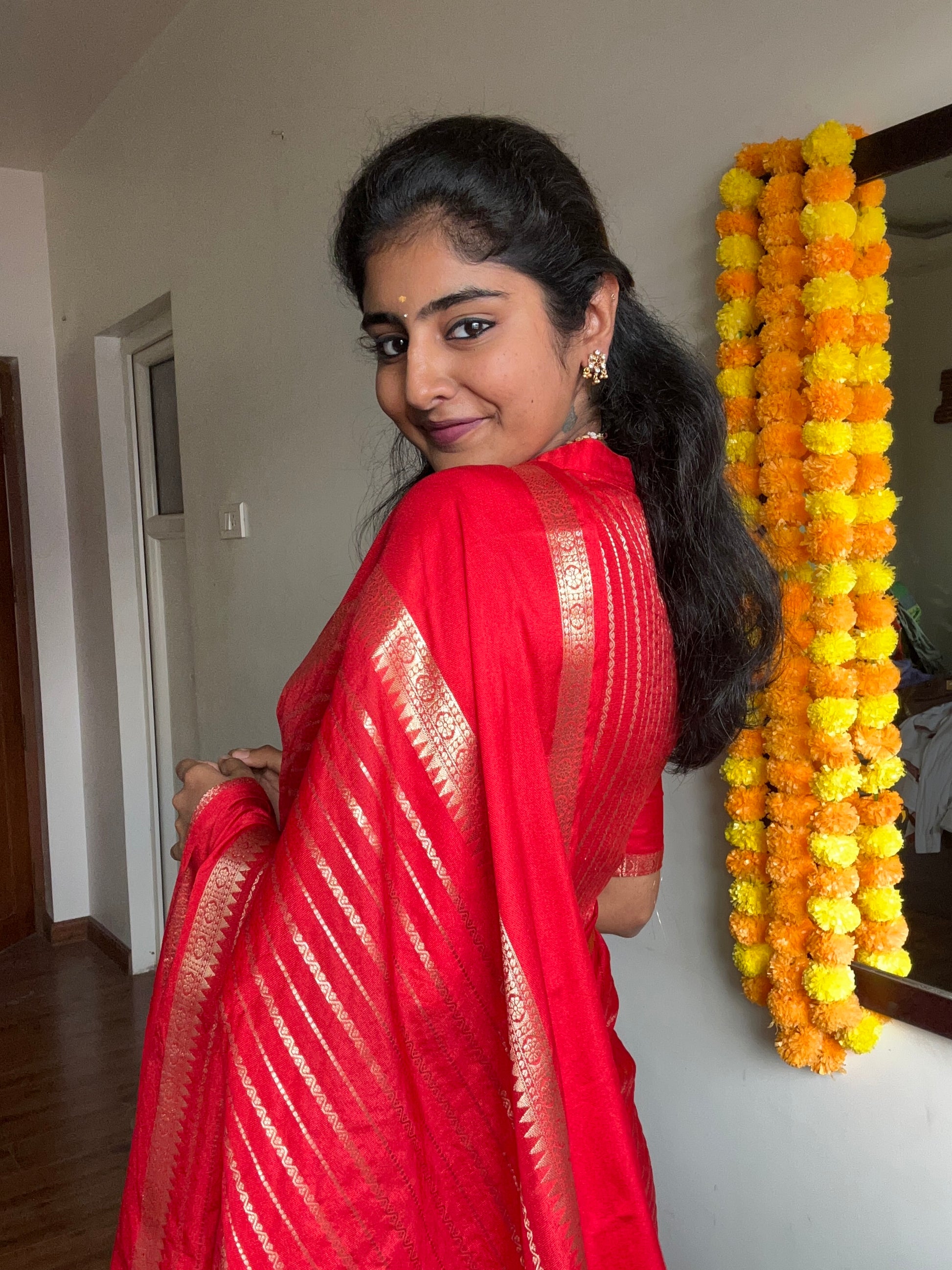 Red Benarasi Katan Warm Silk Saree
