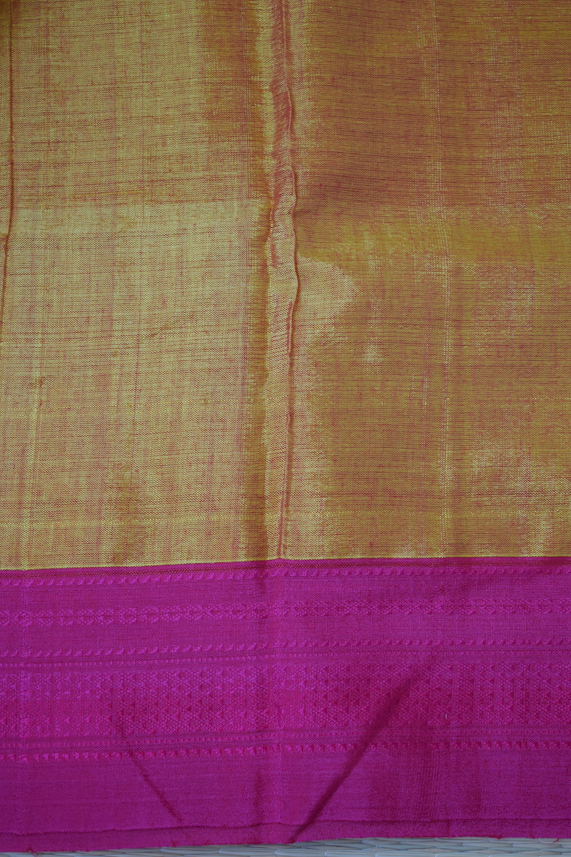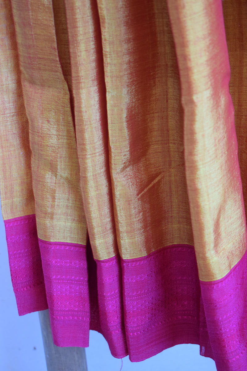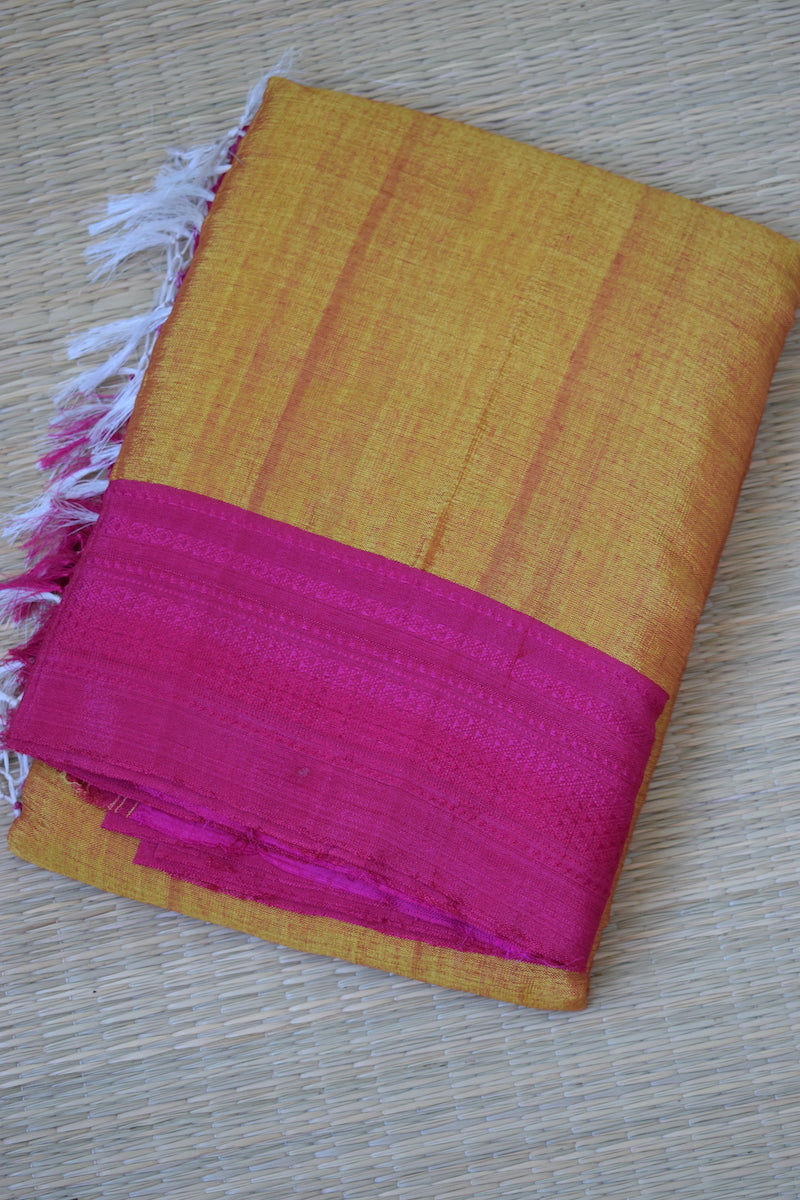 Yellow Dual Shade Ilkal Viscose Saree with Chikki Paras Border
