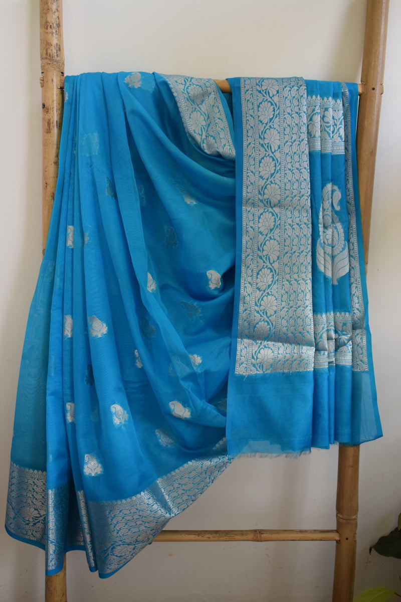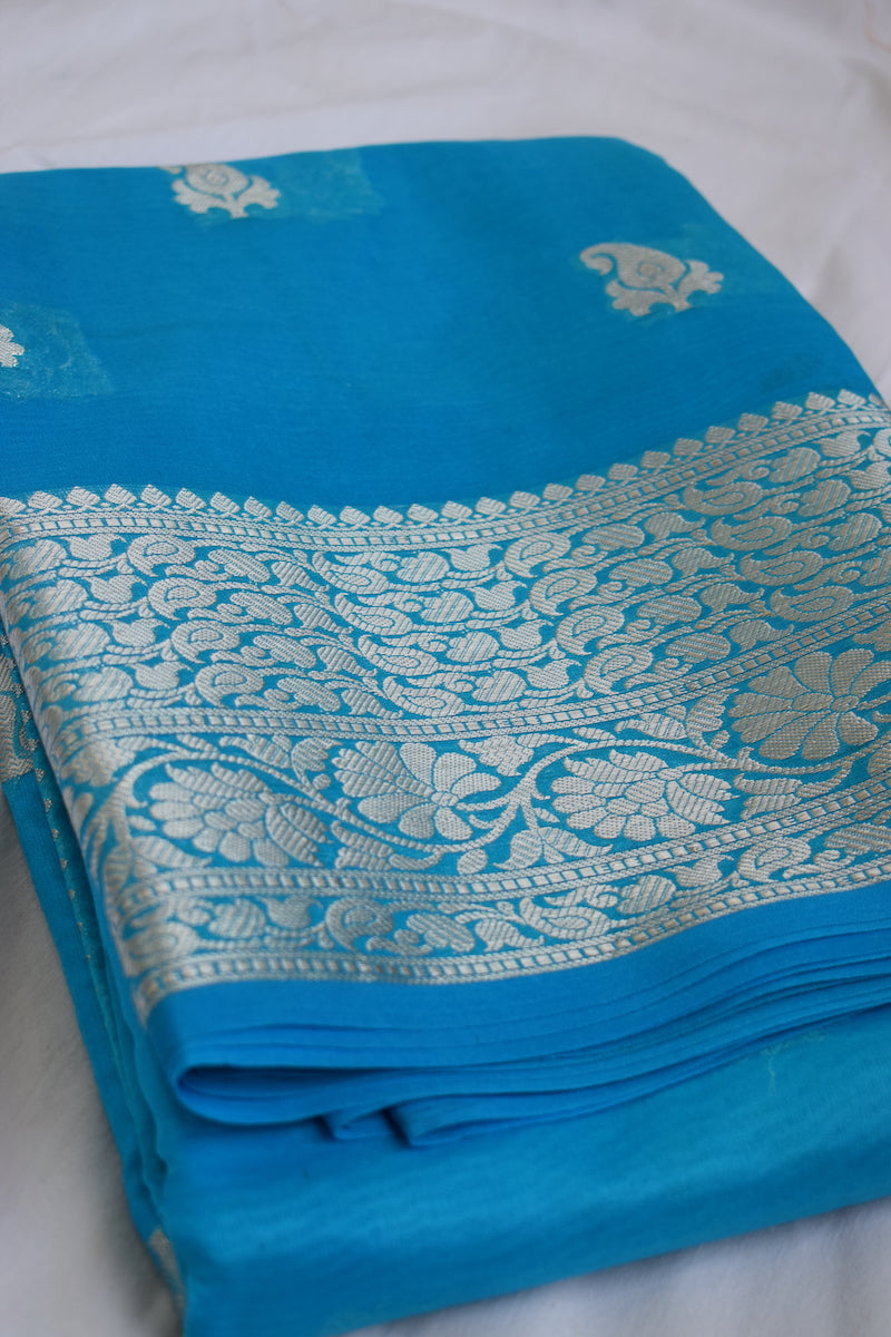 Copper Sulphate Blue Benarasi Soft Georgette Saree