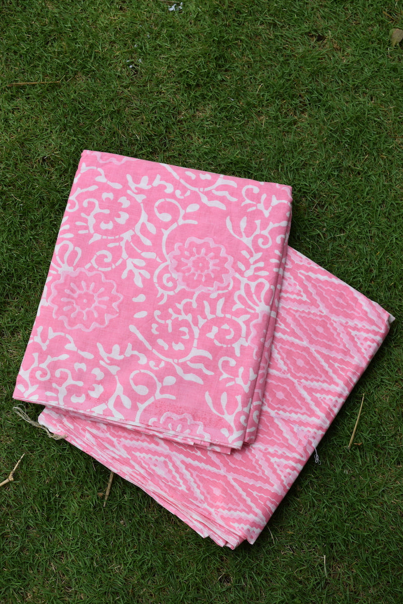 Flamingo Pink Unstitched Suit Set without Dupatta