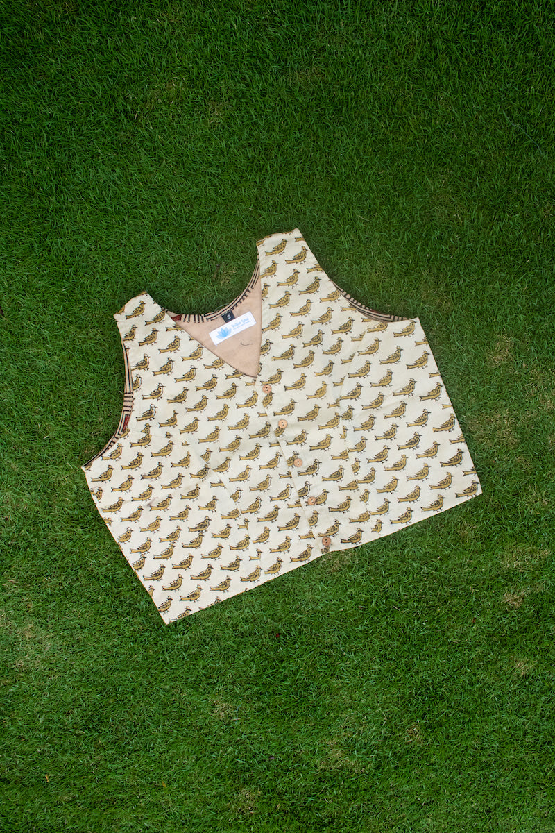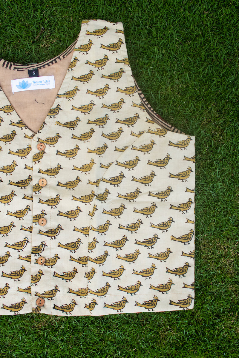 Light Yellow Cotton Block Printed Blouse