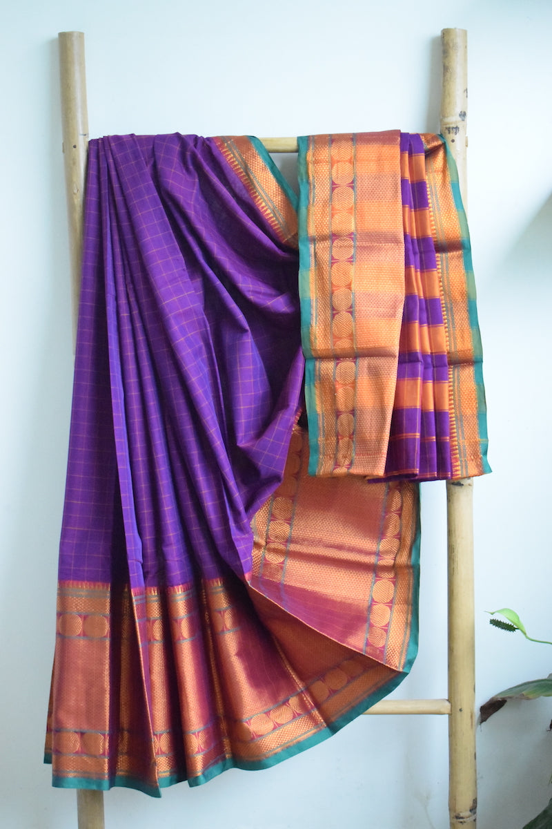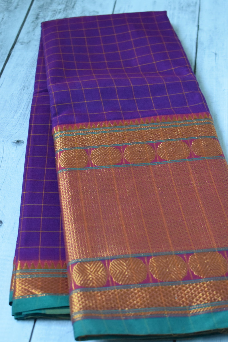 Naidile- Buy Plum Mercerised Cotton Saree & Get Brass Hasli Free