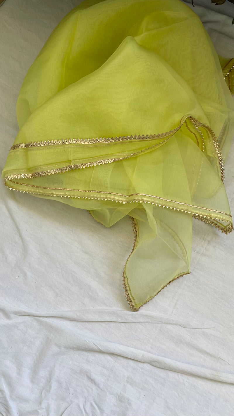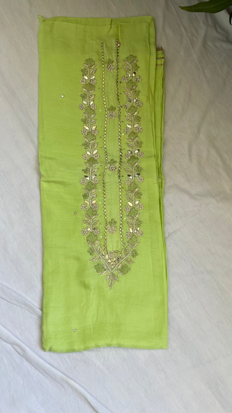 Neon Green Muslin Silk Suit Dupatta Set with Gotapatti Work