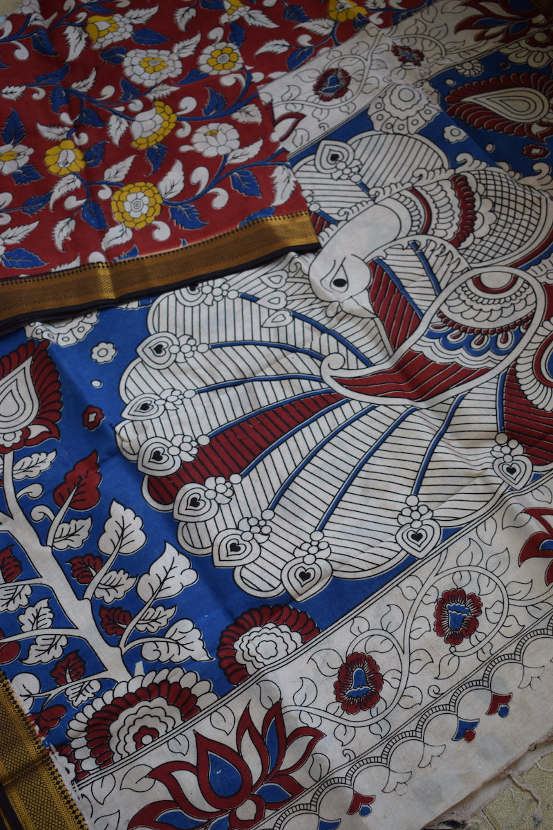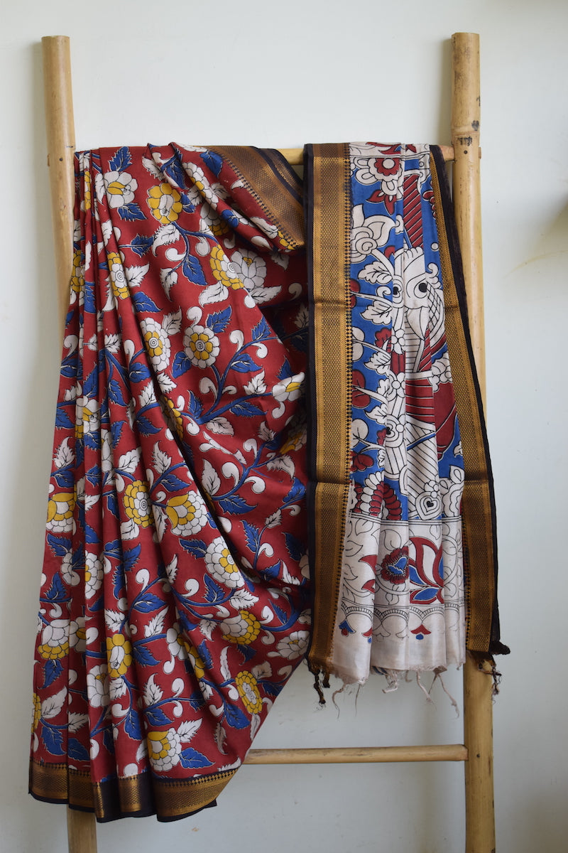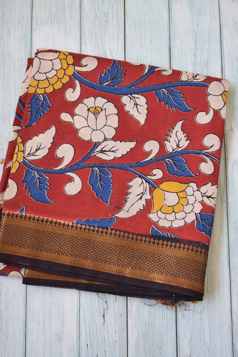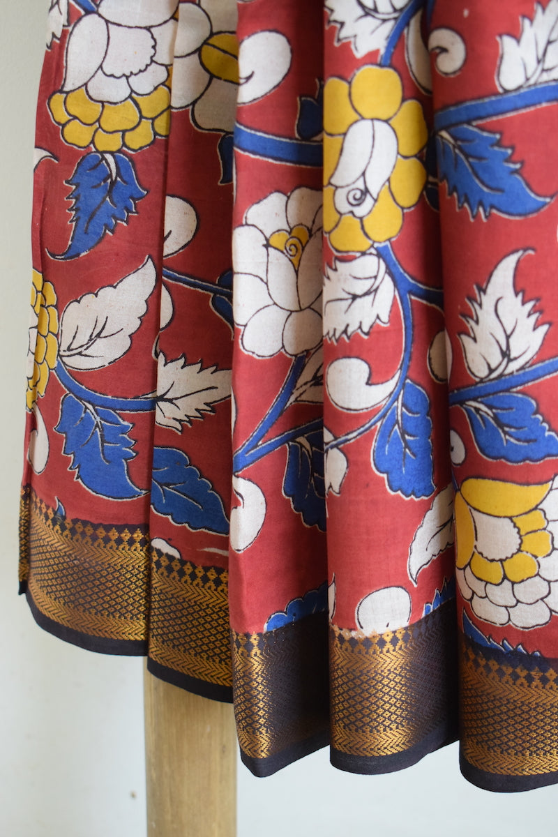 Red Kalamkari Chennuri Silk Saree with Nizam Border