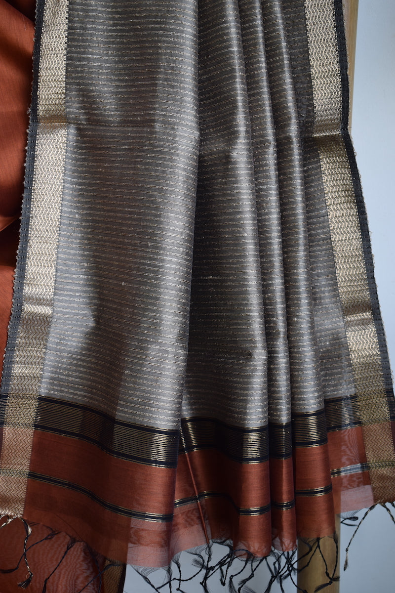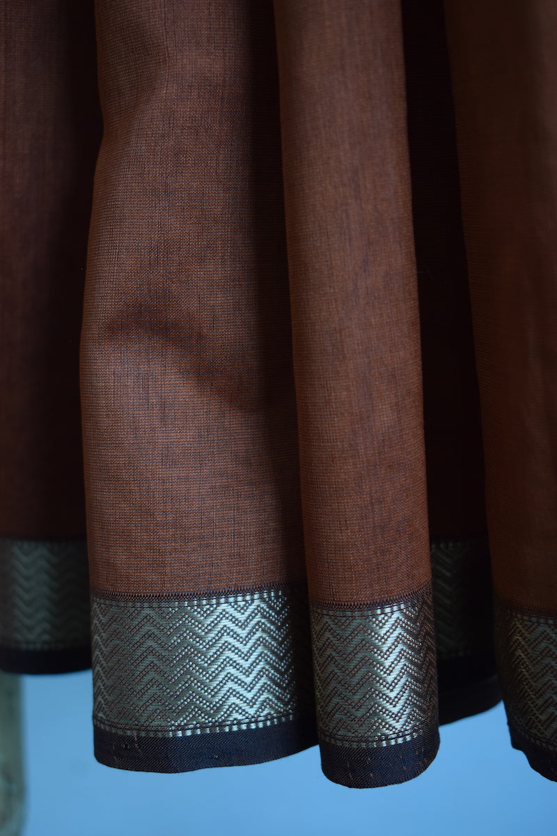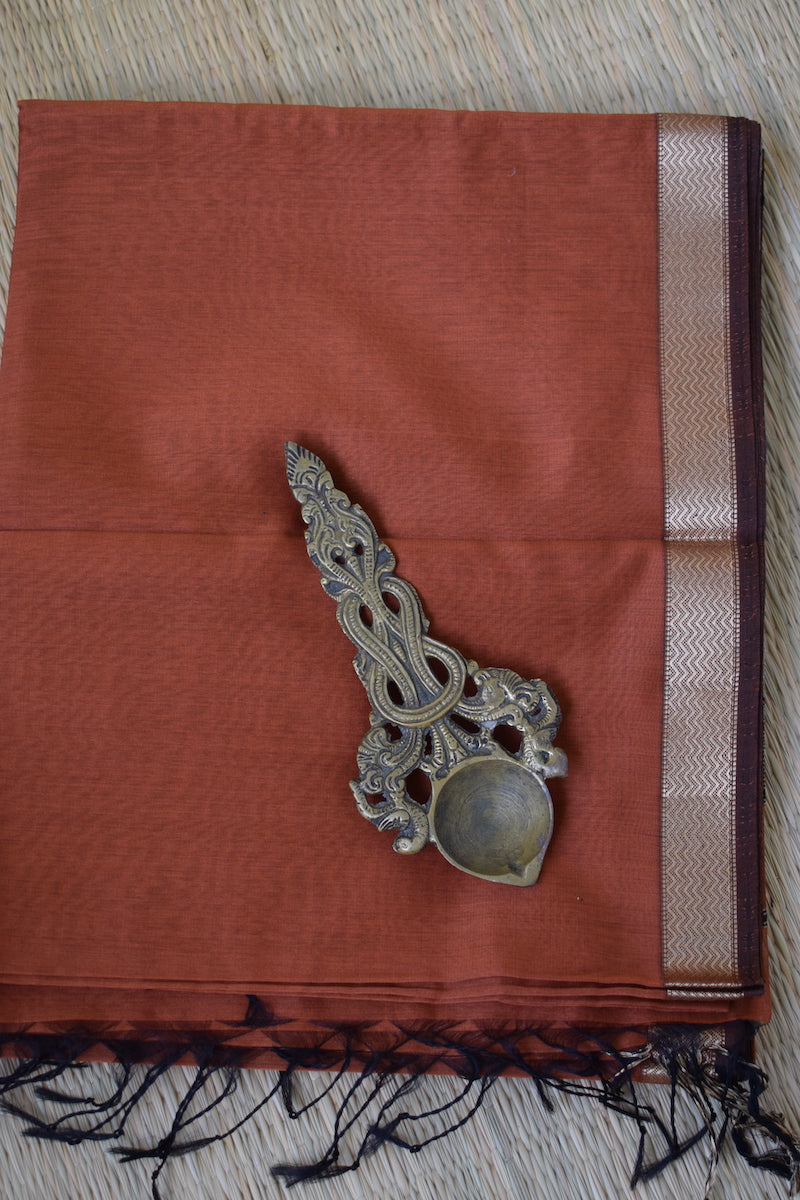 Rust Orange Maheshwari Silk Cotton Saree with Gicha Pallu
